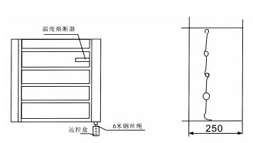 2、防火閥與防火墻之間的風管采用>1.6mm鋼板制作,風管須耐火材料保溫隔熱,防火電氣線路采用φ20鋼管做保護管,控制線纜的彎曲半徑不宜小于250mm,彎曲不多于2處,纜繩長度一般不大于6m。